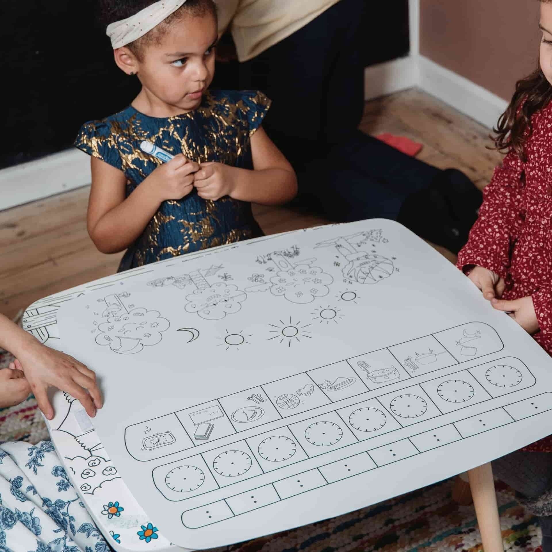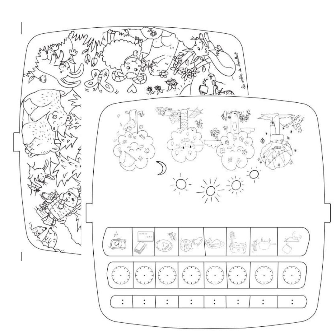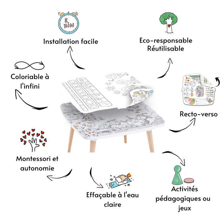 Pakartotinai užlipdę papildymą galėsite akimirksniu pakeisti spalvinimo stalo dizainą. Jį galima labai lengvai pritvirtinti prie stalo paviršiaus naudojant Velcro sistemą.