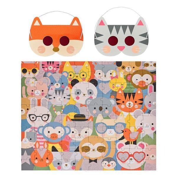 Ši 100 detalių dėlionė su spalvingu gyvūnų karnavalu suteiks vaikams dar daugiau pramogos nei įprasta dėlionė. Užsidėję specialias rinkinyje esančias kaukes, jie galės pamatyti paslėptus vaizdus jau sudėliotoje dėlionėje.