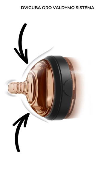 Inovatyvi oro valdymo sistema padeda pašalinti susikaupusį orą iš buteliuko, todėl sumažėja dujų kaupimosi rizika, o taip pat padeda išvengti atpylinėjimo ir dieglių.