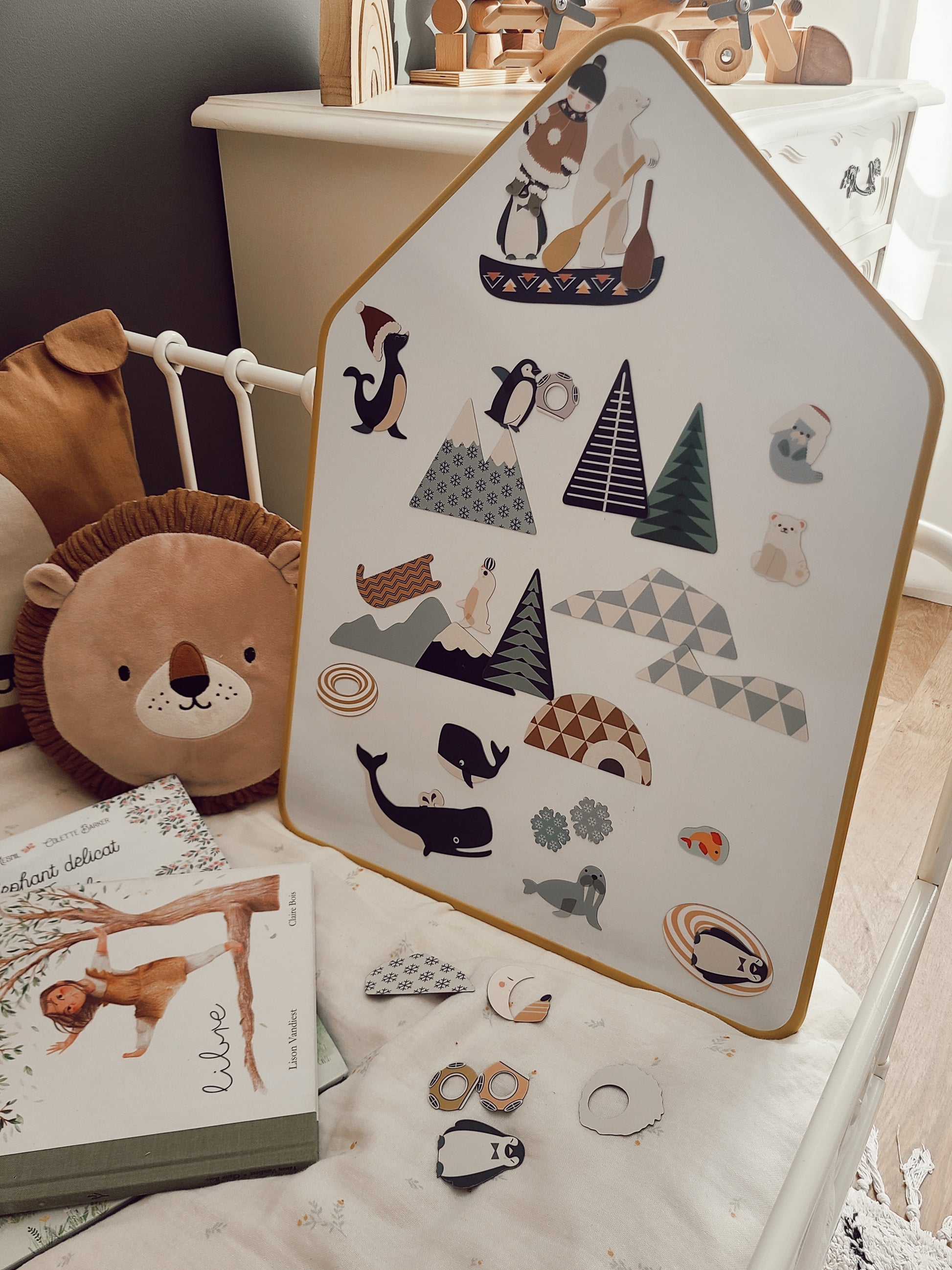 40 magnetų (2 iš anksto iškirpti A4 formato magnetiniai lakštai. Formos turi būti atsargiai atskirtos nuo atramos).