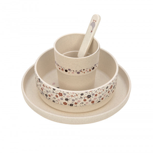 Į šį puikų rinkinį įeina lėkštė, dubenėlis, puodelis ir šaukštelis – visa tai pateikiama gražioje dovanų dėžutėje!