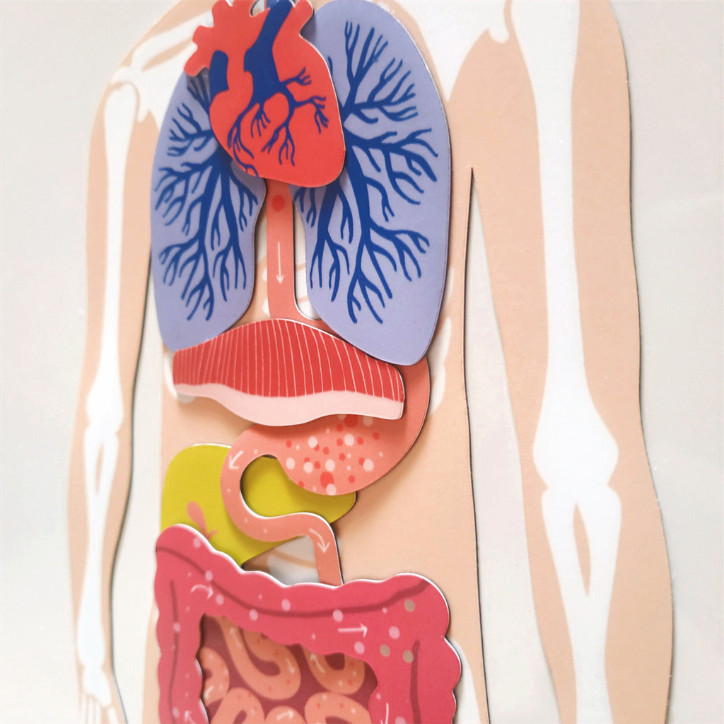 Tyrinėkite žmogaus anatomiją rekonstruodami skeletą, smagiai sudėdami organus tinkamoje vietoje ir suteikdami jiems pavadinimus naudodami užrašytas etiketes.