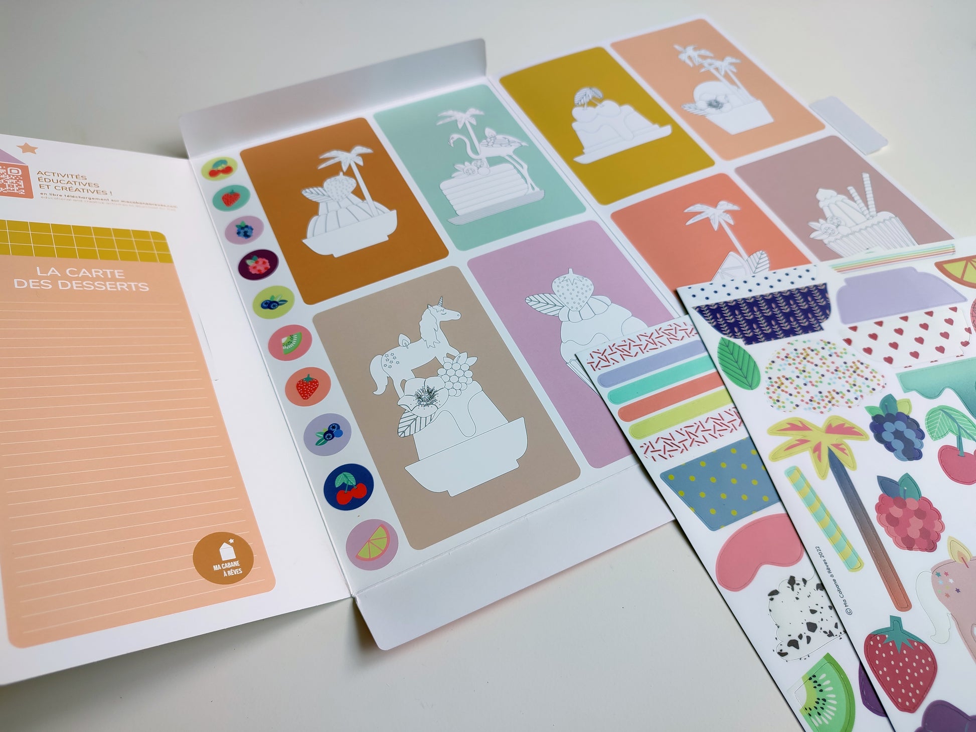 8 kortelės, kurias galima nuspalvinti ir iškirpti galinėje pakuotės pusėje.