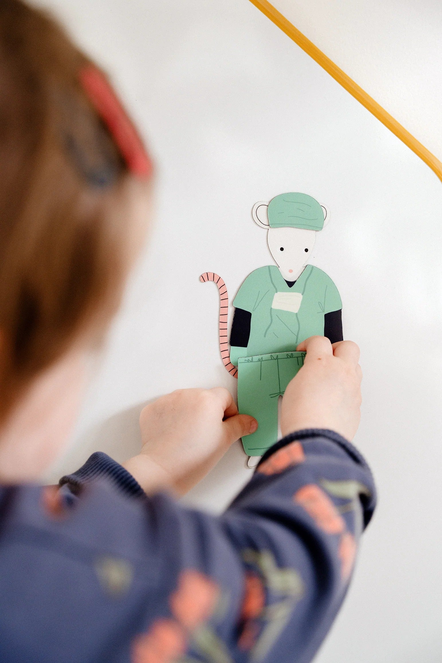 Astronautas, gydytojas, mokytoja ar kepėjas? Šiame rinkinyje vaikai atras net 13 profesijų, o dar daugiau – galės patys jas sugalvoti ir kurti naujus personažus!