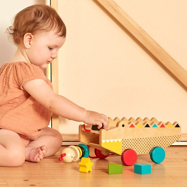 Šis draugiškas krokodilas taps puikiu pagalbininku mažyliui mokantis pirmųjų įgūdžių! Jis padės pažinti įvairias formas ir spalvas, o pripildžius puodynę formelėmis, paskatins savo naują draugą keliauti po kambarį kartu.