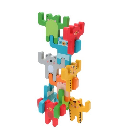 Ar pasiruošę akrobatams? Suverčiame kauliuką, kad sužinotume, kurią spalvą turinį gyvūną dėti į bokštą, o tada atsargiai deriname su kitu gyvūnu iš krūvos. Galite jį padėti bet kur, tačiau būkite atsargūs, nes jei mažieji akrobatai nukris, žaidimas baigsis!