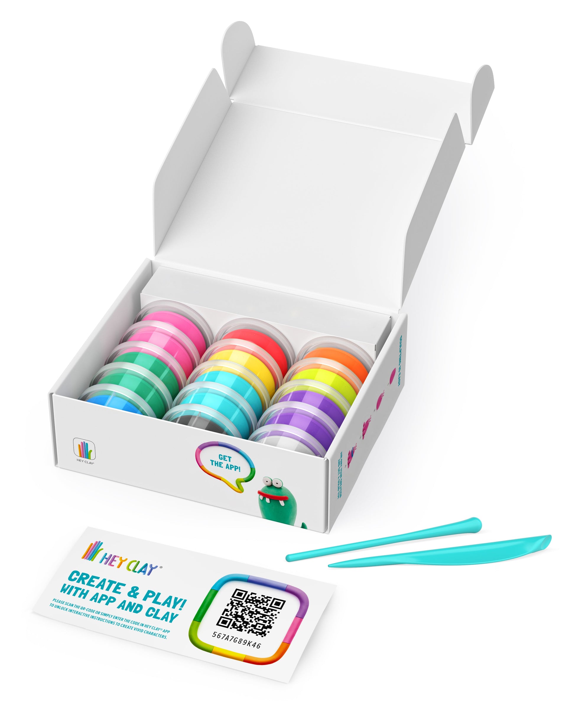 - Interaktyvios instrukcijos: Atsisiųskite nemokamą HEY CLAY programėlę, įveskite kodą, kurį rasite dėžutėje, ir sekite žingsnis po žingsnio pateiktas instrukcijas, kad sukurtumėte linksmus personažus.