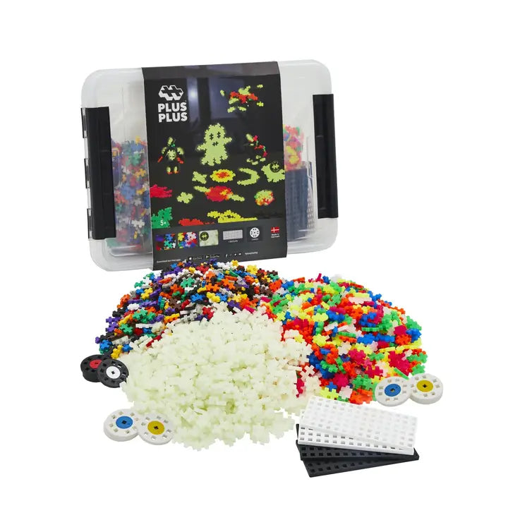 Atraskite kūrybos džiaugsmą su Plus-Plus fosforiniu Discovery Box – 2000 detalių rinkiniu! Šis mega komplektas leis vaikams statyti ir kurti neįtikėtinas formas, kurios švyti tamsoje.