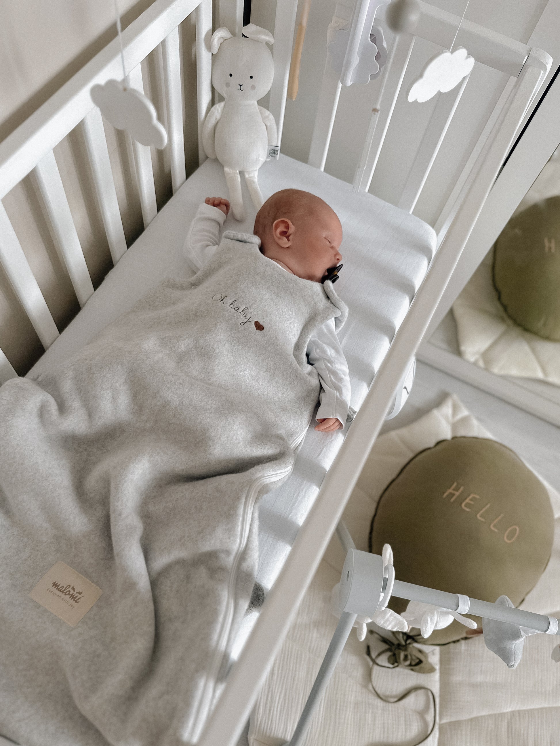 Praktiškas miegmaišis, pagamintas iš ekologiškos medvilnės, panašios į vilną.