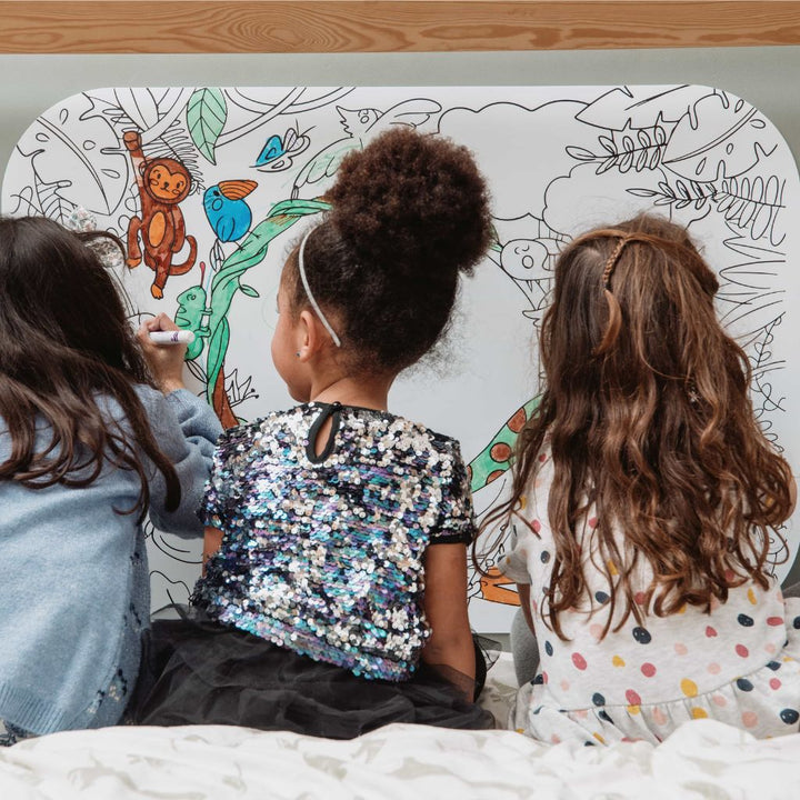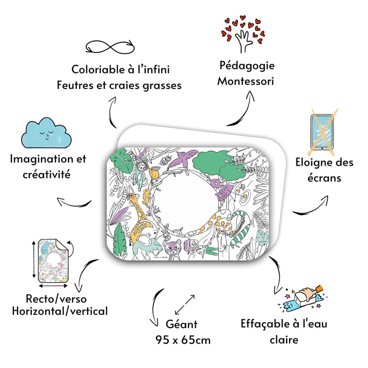 "Coloriboard" yra didelis daugkartinio naudojimo spalvinimo lapas. Priekinė pusė džiunglių tema apima visus simbolinius šios visatos gyvūnus: tigrą, gyvatę, dramblį ir kt.